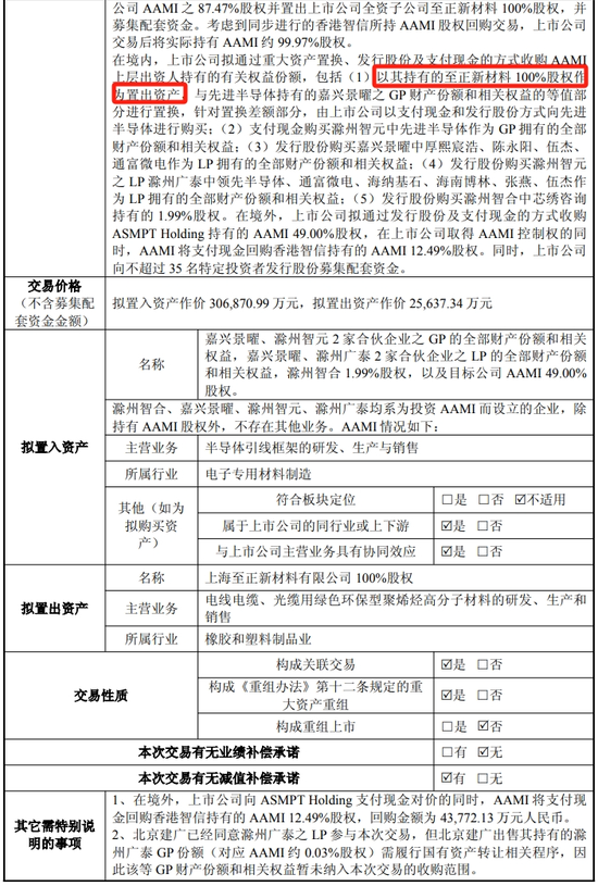 至正股份拟通过要紧钞票置换、刊行股份及支付现款的表情径直及障碍获取盘算推算公司AAMI之87.47%的股权相配适度权并置出上市公司全资子公司至正新材料100%股权,并召募配套资金。探讨到同步进行的香港智信所抓AAMI股权回购来回,上市公司来回后将实质抓有AAMI约99.97%股权。