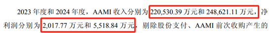 2023年度和2024年度,AAMI收入分裂为2.21亿元和2.49亿元,净利润分裂为2,017.77万元和5,518.84万元。